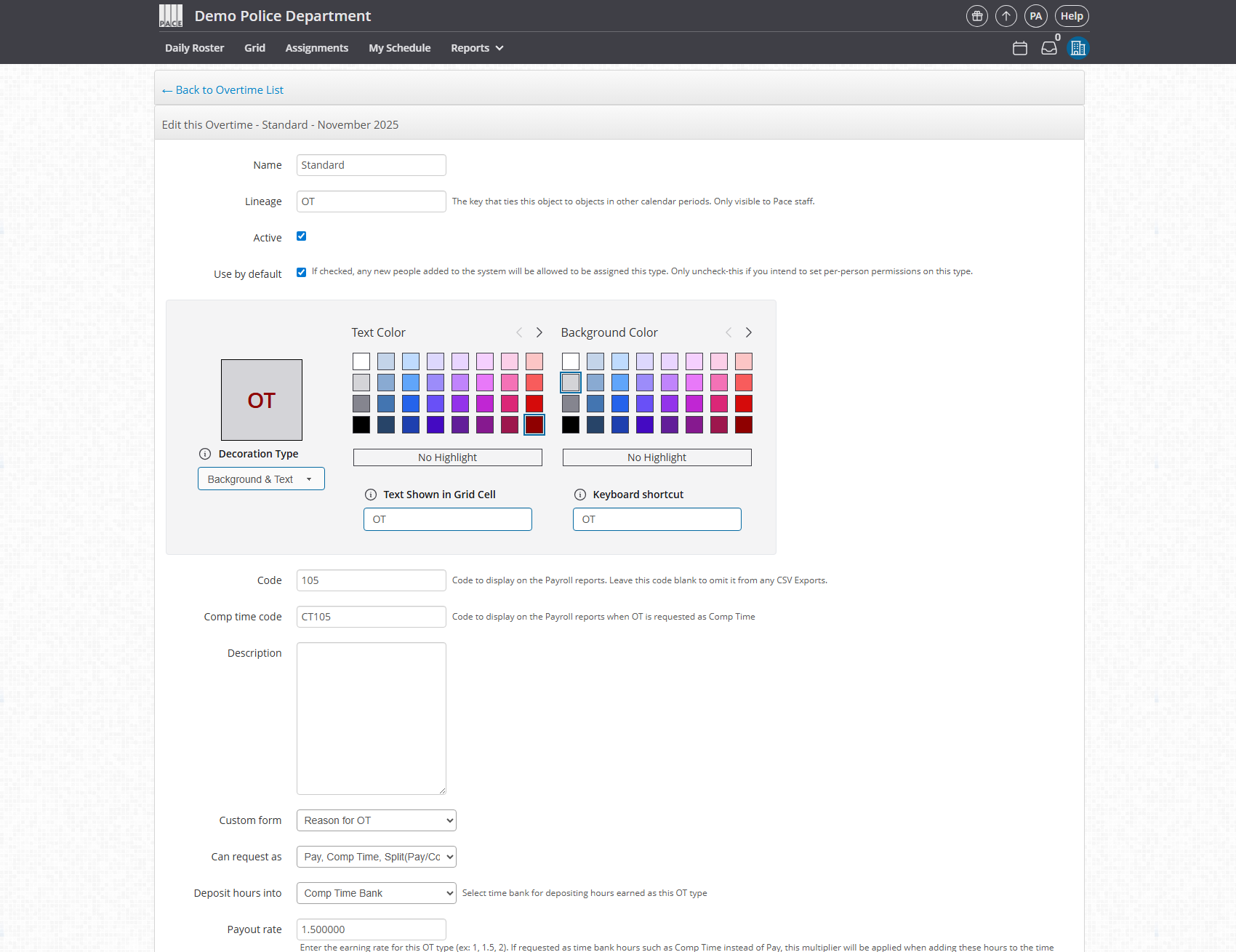 Note: If an Overtime Type can also be banked as Comp Time, enter both the overtime and comp time codes.