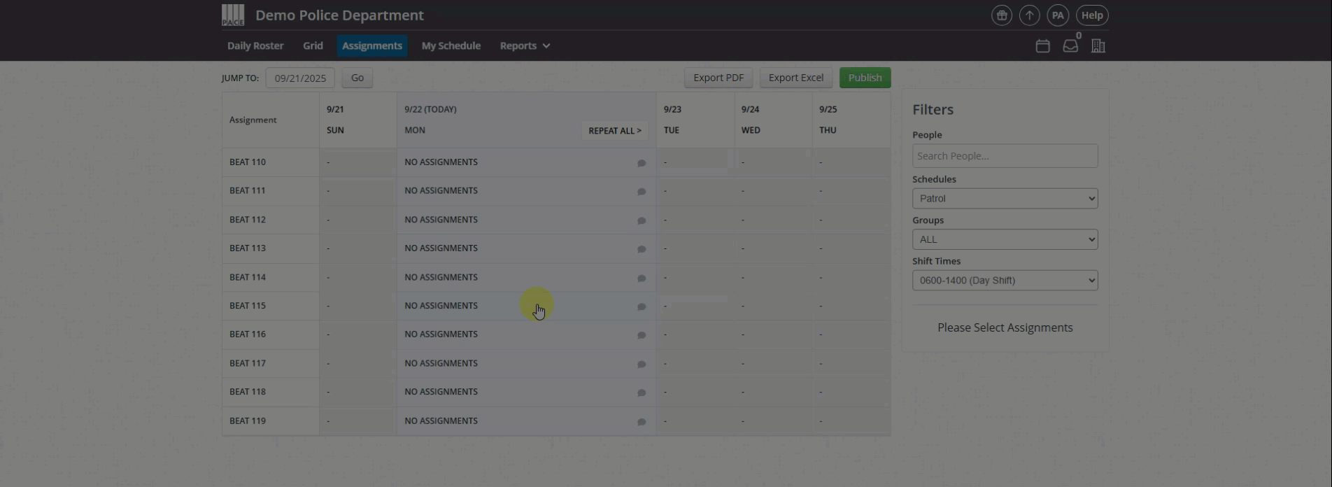 Go to Assignments (your department may use a custom label such as Beats, Sectors, Areas, or Zones).