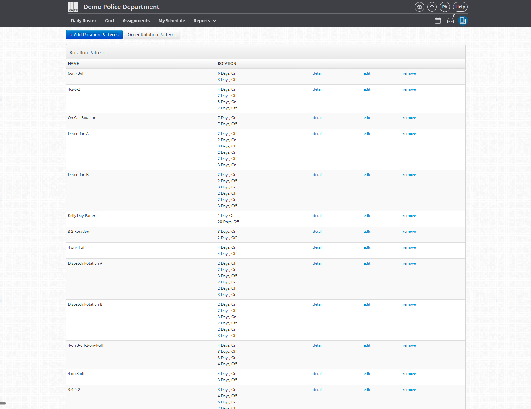 Rotation Patterns define repeating on/off sequences used when assigning Shift Series (formerly Permanent Shifts). This article explains how to create, edit, or delete Rotation Patterns using the current navigation paths and UI labels.