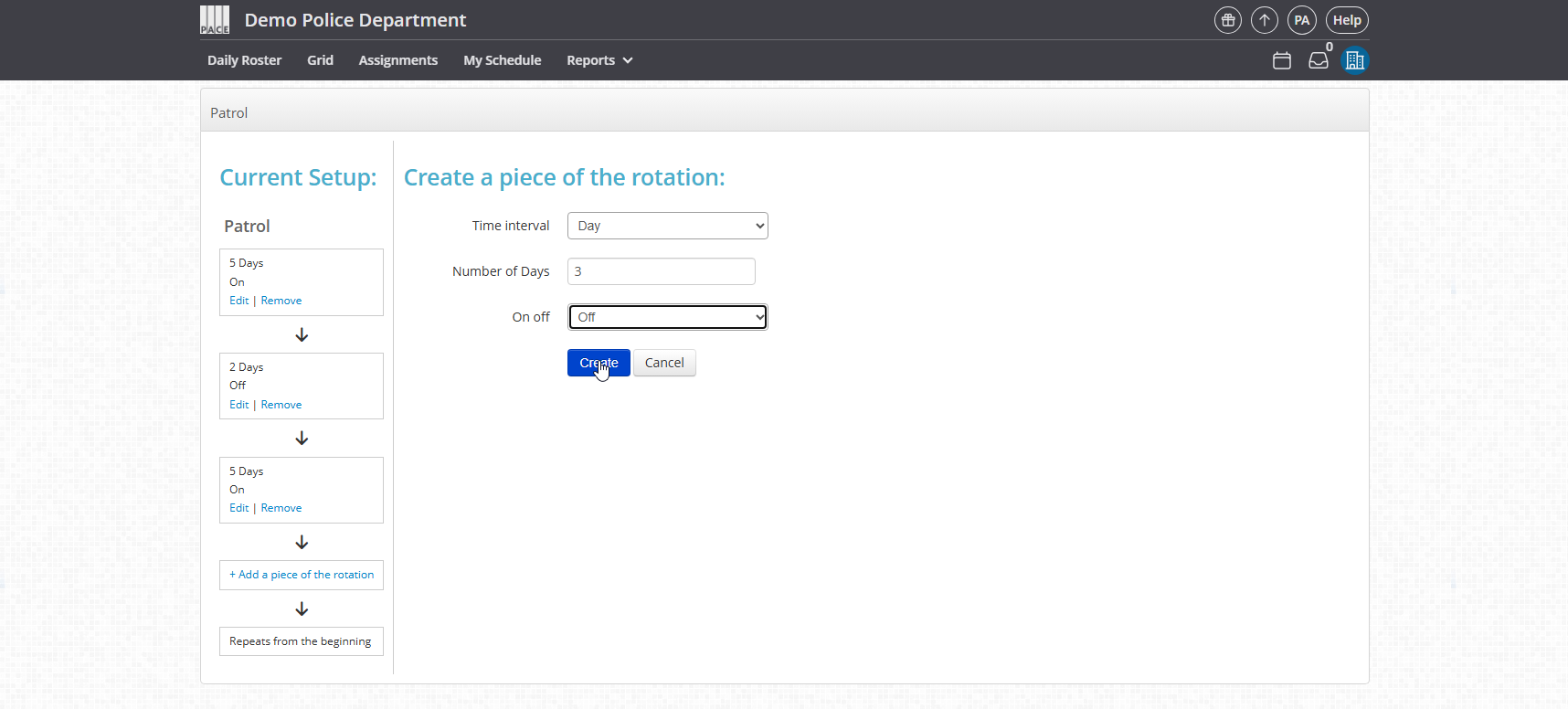 Use a clear name so new users understand the sequence (e.g., 5on – 2off – 5on – 3off).