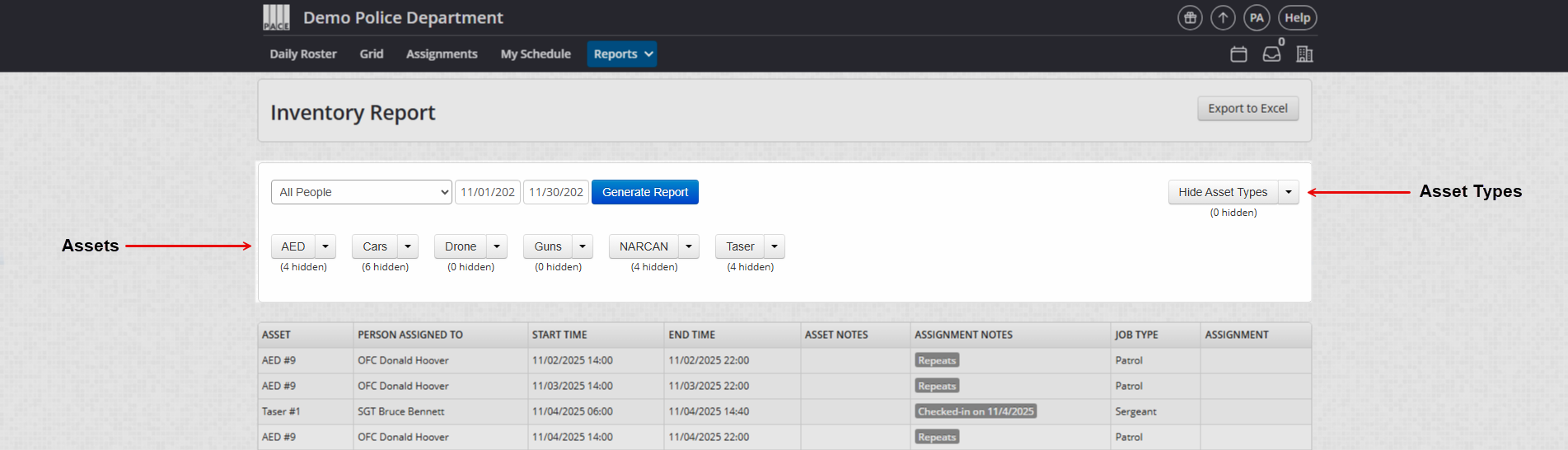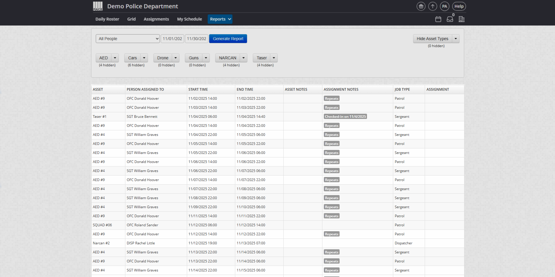 “No records found” → Adjust the date range or verify that the user had assets assigned during that period.