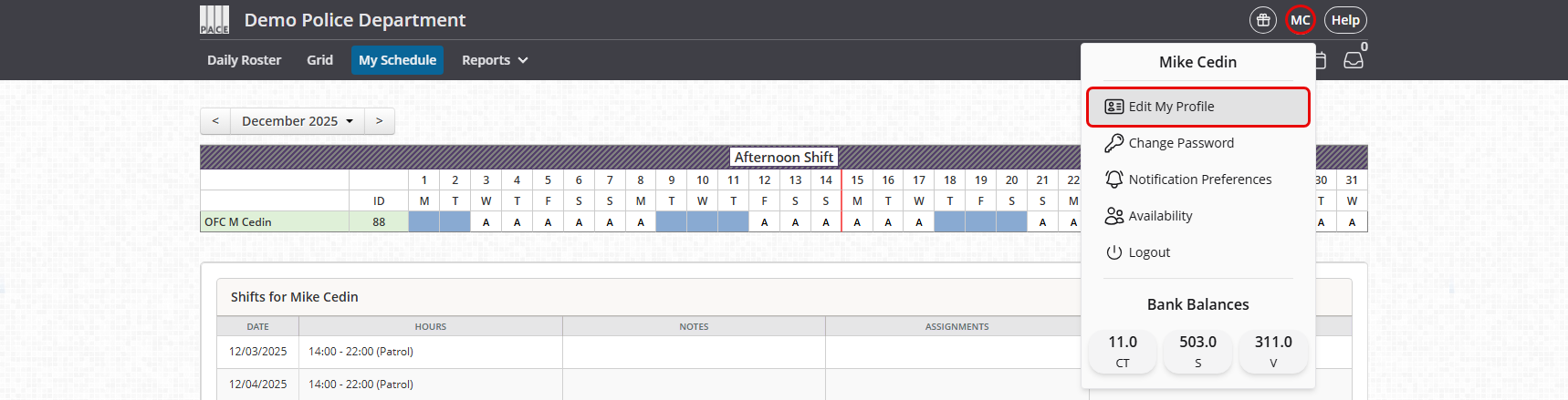 Navigate to My Schedule to confirm your Default Schedule setting.