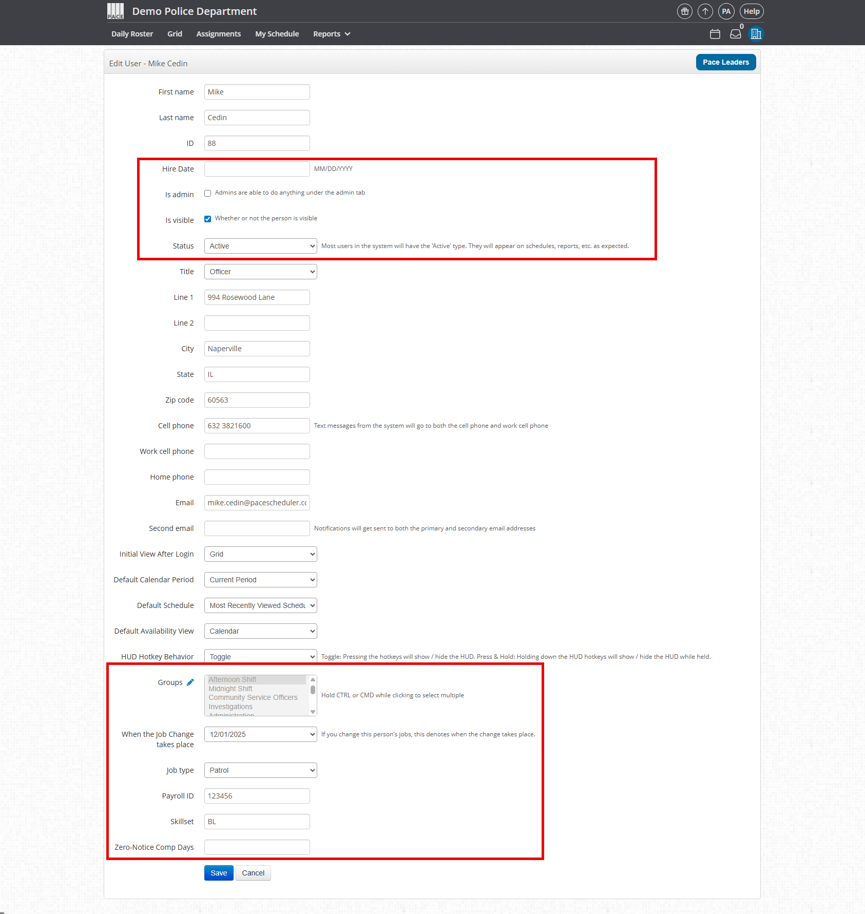 Each user can update certain personal details and choose how Pace Scheduler behaves when they log in. The options visible in your profile depend on your role. Admin Panel users see additional configuration fields; Basic Users see a simplified version with only their personal information and display preferences.